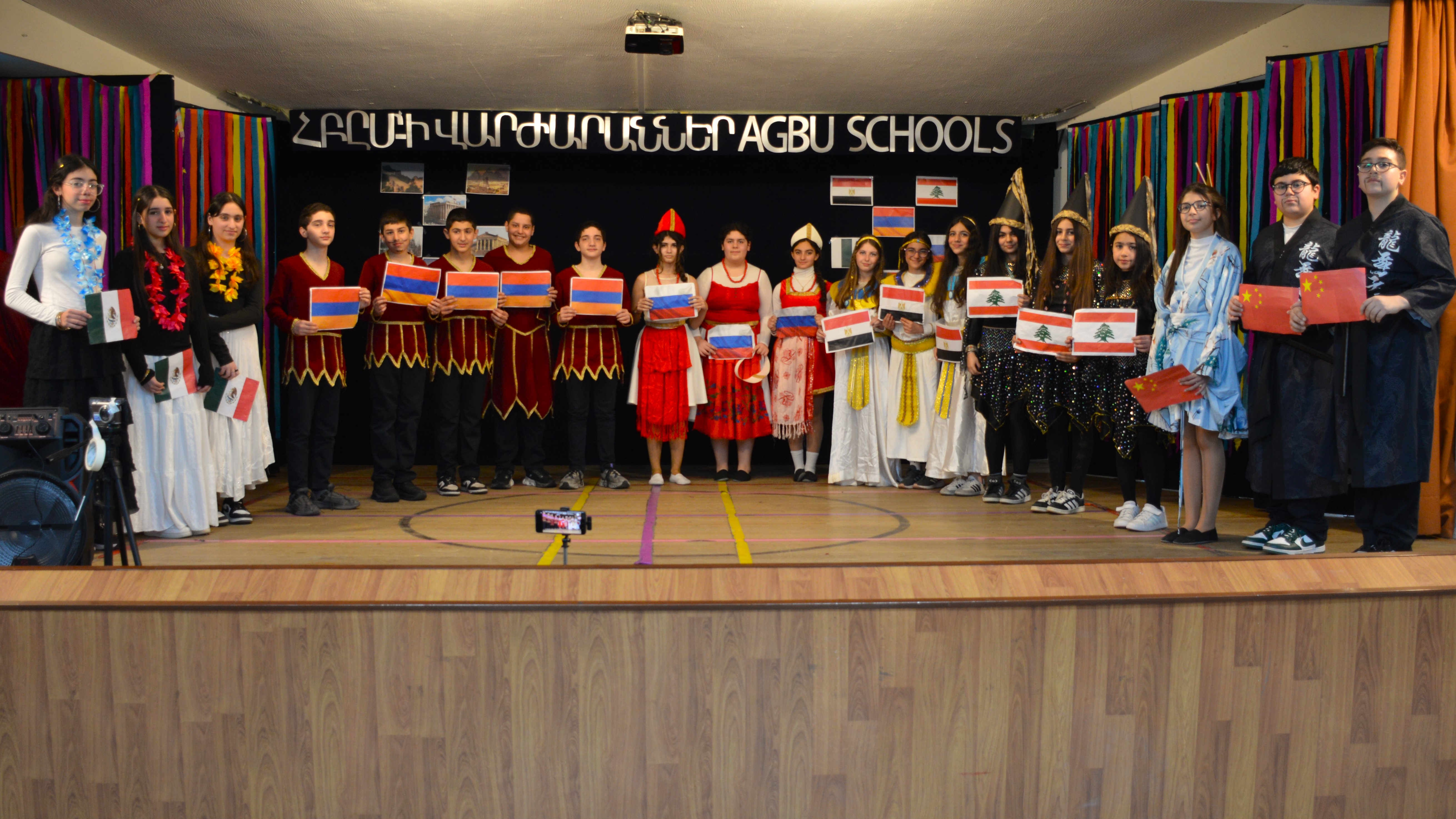 Որպէս իրենց Նախագծային հումքով լեզուի ուսուցման (PBL) մաս, «Աշխարհի Մշակոյթները» խորագրին տակ՝ մեր սաները տարբեր ազգերու հարուստ ժառանգութիւնը պրպտեցին: Ապա, իրենց պատրաստած սահիկներուն օգնութեամբ՝ անոնք տարբեր երկիրներու աւանդական տարազները, երաժշտութիւնը, քարտէզները, դրօշակները, ինչպէս նաեւ ճարտարապետութիւնն ու խոհանոցը ներկայացուցին՝ սրահը վերածելով համաշխարհային ցուցահանդէսի մը: